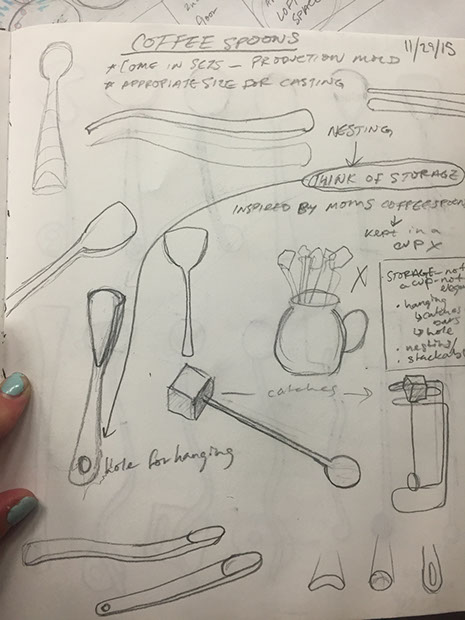 I designed and casted a set of coffee spoons for my investment casting studio at RISD. The final assignment was to design and create a product using a production mold so I chose coffee spoons to take advantage of the repeatability.